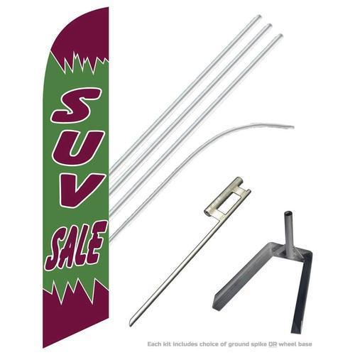 Draw attention to your new line-up of vehicles or your next big sales event using these easy to set up 15 ft. swooper flags. Designed to wave through the air with or without wind, these flags prominently display your message and are easily interchangeable.