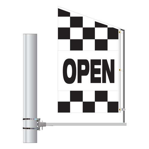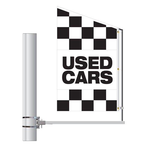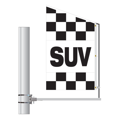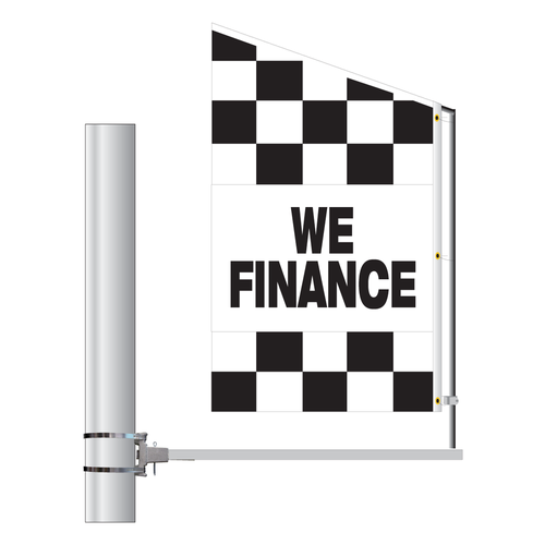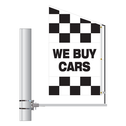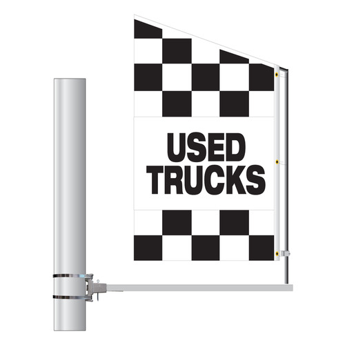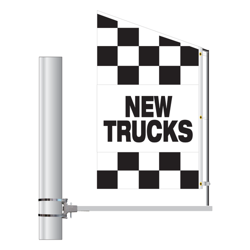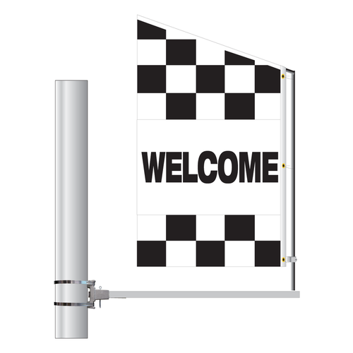 These 3-1/2ft x 5-1/2ft nylon flags are available with 16 different stock slogans printed in Black on the White center panel. Slogans are screened on one side and print bleeds through to opposite side. Double faced designs are available (read properly from either approaching direction).